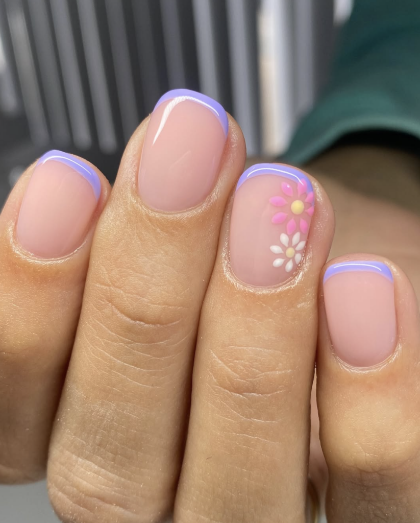 Fransız manikür bu sezon klasik beyaz çizgisinden sıyrılıp pastel tonlarla yeniden yorumlanıyor. Lila, baby blue ve soft pembe gibi bahar renkleriyle yapılan ince uç detayları, sade bir manikürü anında trend bir görünüme taşıyor. Üzerine eklenen minik çiçek dokunuşları ise bu stile modern ve feminen bir hava katıyor. Hem klasik hem de yaratıcı olmak isteyenler için ideal bir denge.