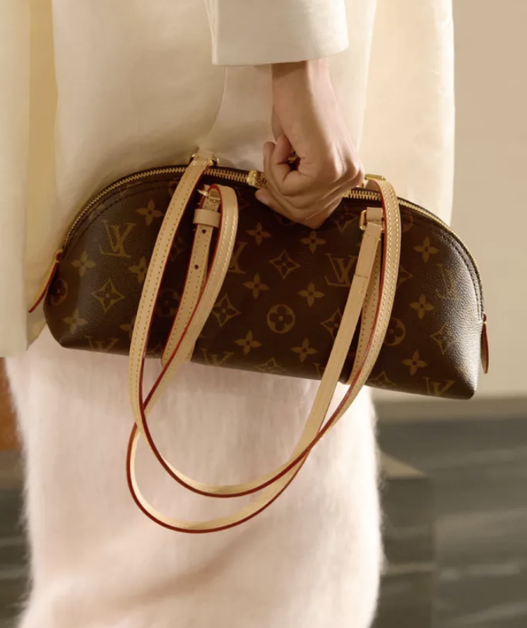 Balenciaga, Prada ve Louis Vuitton’un podyumlarında sıkça gördüğümüz yuvarlak formlu bowling çantalar 2026’nın en güçlü siluetlerinden biri. East-West form, yarım ay kulplar ve kompakt ama hacimli yapı günlük kullanım için ideal.