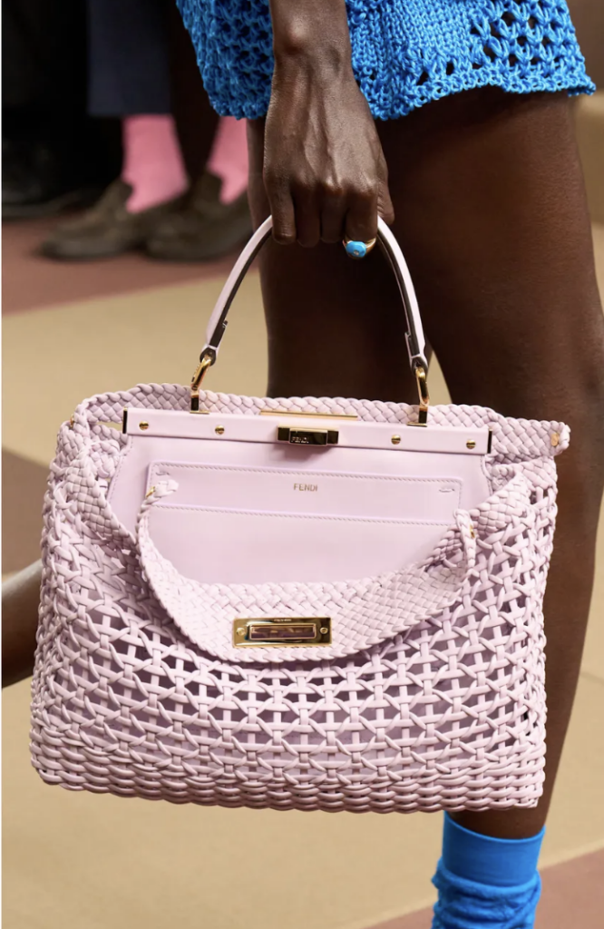 Dokuma çantalar her bahar geri gelir ama bu sezon versiyonları çok daha lüks. Ferragamo, Fendi ve Dior’da gördüğümüz örgü detaylı modeller sahile değil; brunch’a, akşam yemeğine ve şehir stiline uygun.
