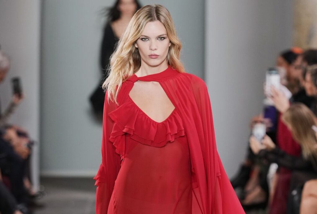 Blumarine Spring Summer 2026 defilesi Milano Moda Haftası’nda sahneye çıktı ve markanın feminen kimliğini cesur bir estetikle yeniden yorumladı. Koleksiyon, dökümlü elbiseler, transparan tüller ve kelebek detaylarla güçlü bir çekicilik sunarken; uçuşan şifon parçalar ve çiçek desenleri romantik bir kontrast yarattı.