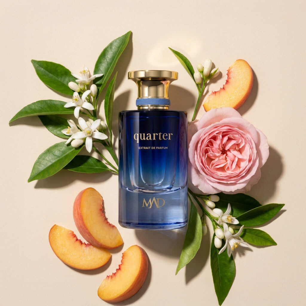 Quarter’ın olfaktif yapısı, klasik parfüm mimarisinin modern bir yorumunu sunuyor. Açılışta mandarin ve petit grain’in ferah, doğal parlaklığı hissediliyor. Bu ilk etki, zamanla portakal çiçeği, gül ve şeftalinin yumuşak kalp notalarına evriliyor.