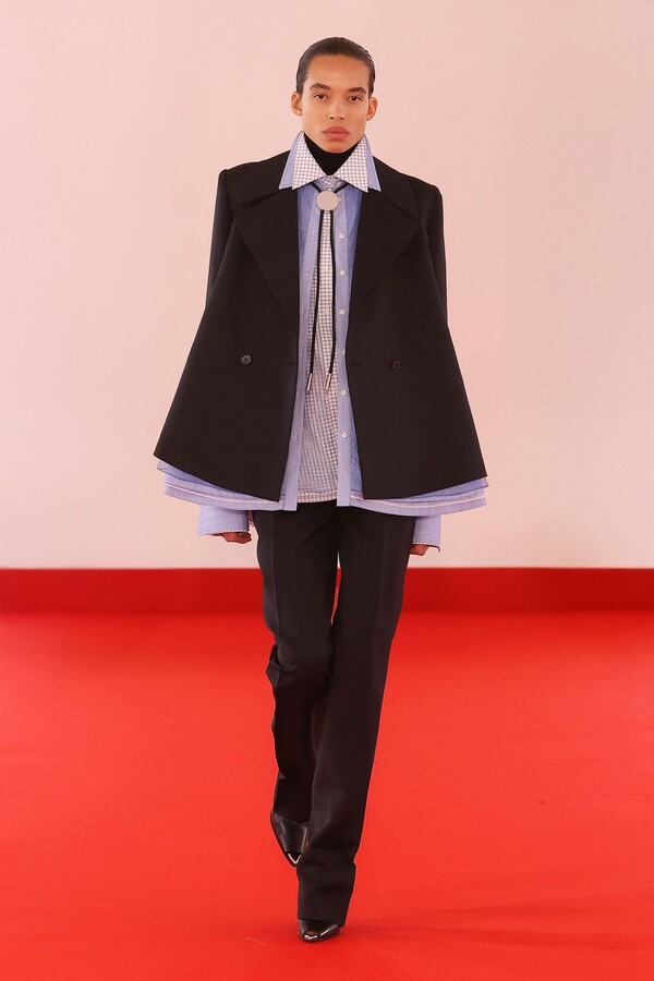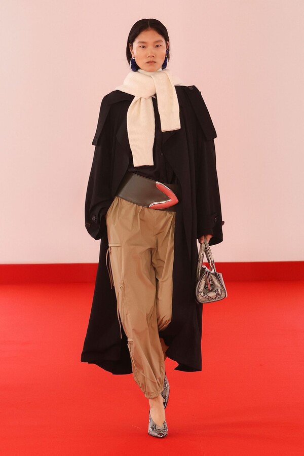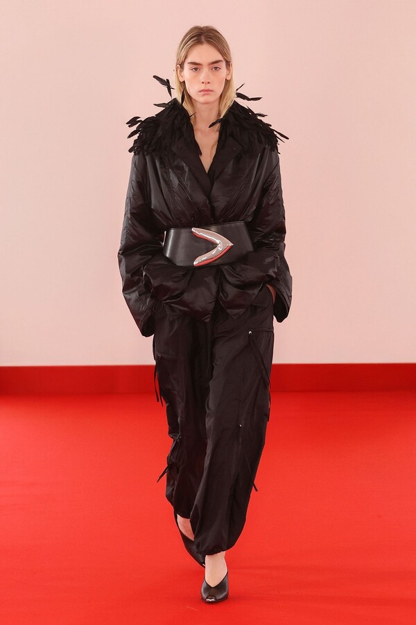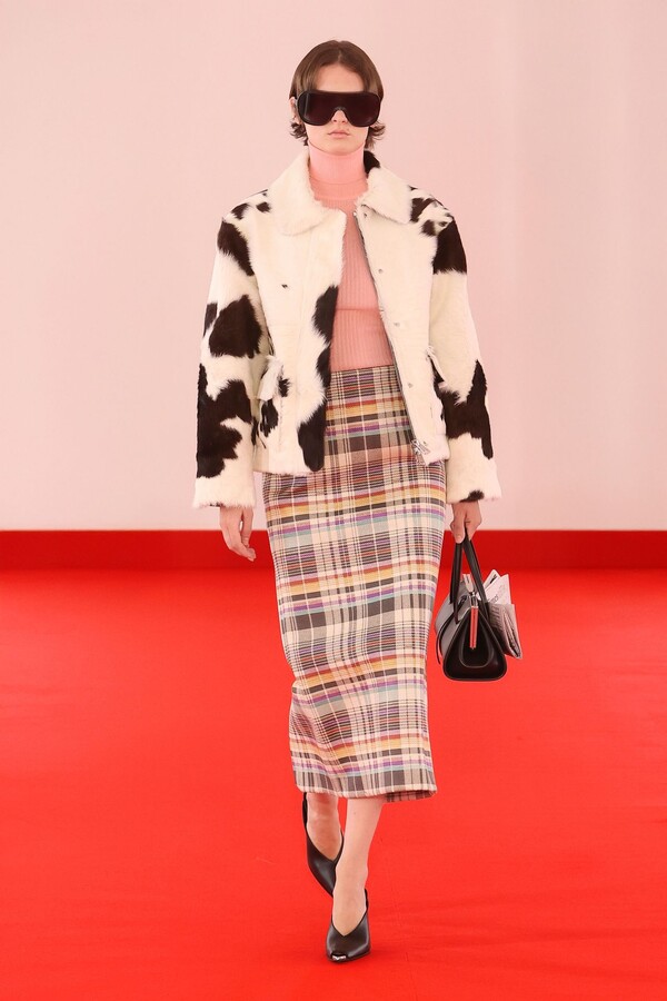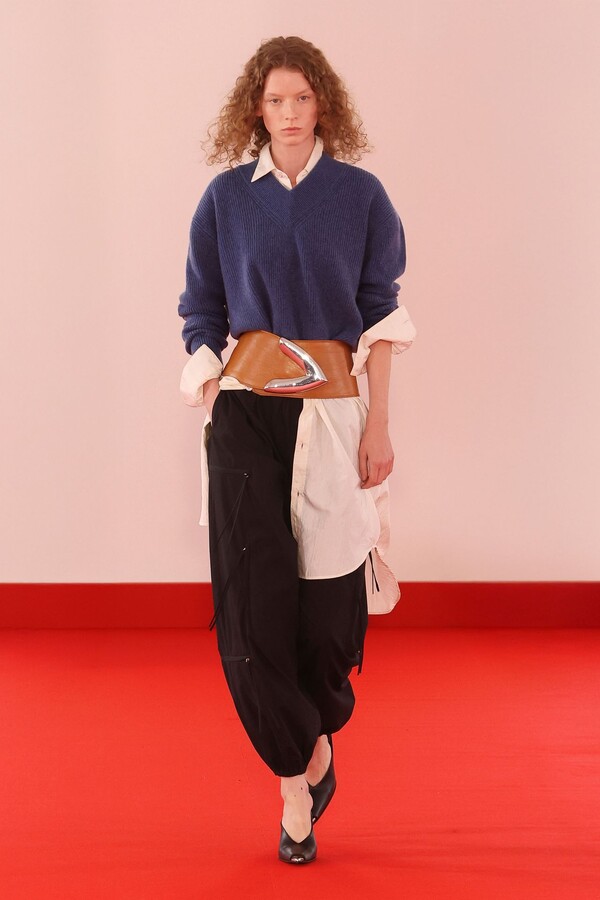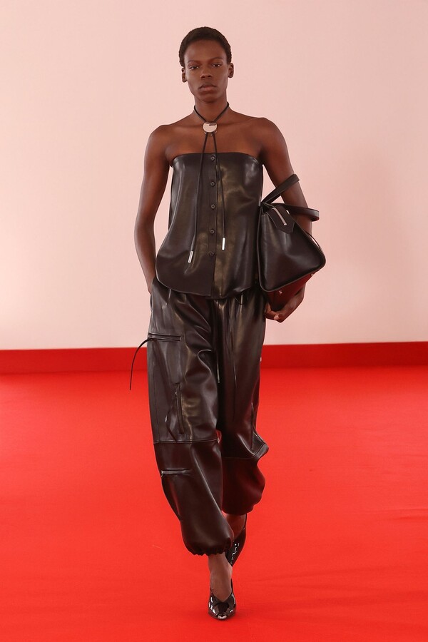 Defile, neopren destekli ekose bir blazer ve iri tokalı dar bir bandeau ile açıldı. İlk andan itibaren “disiplinli terzilik” ile “gündelik rahatlık” arasındaki kontrast vurgulandı.