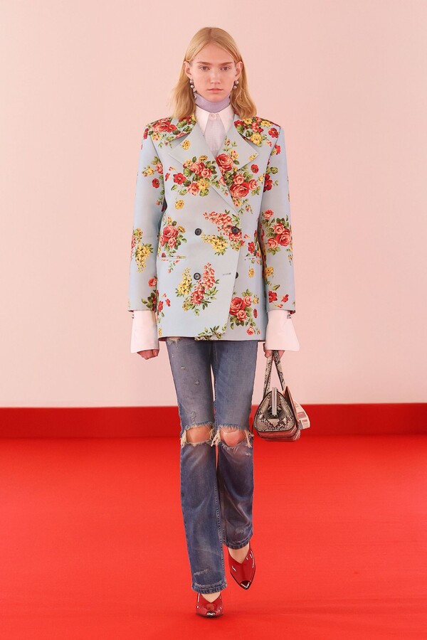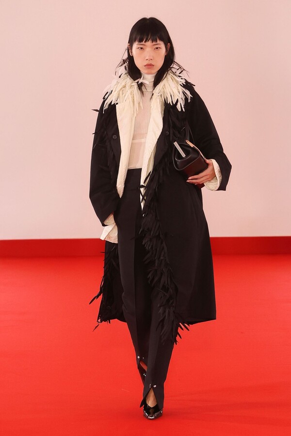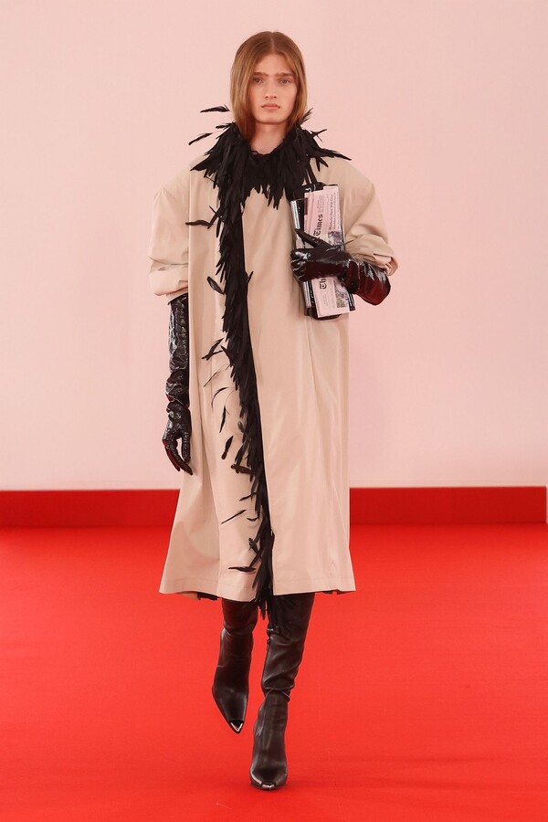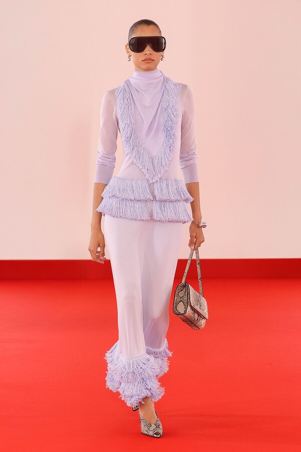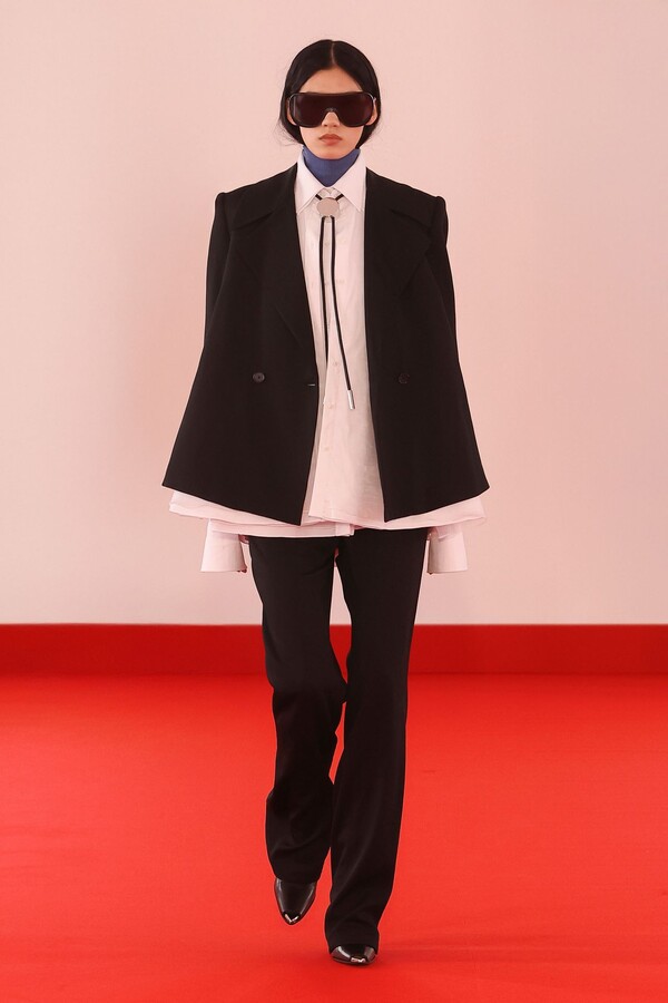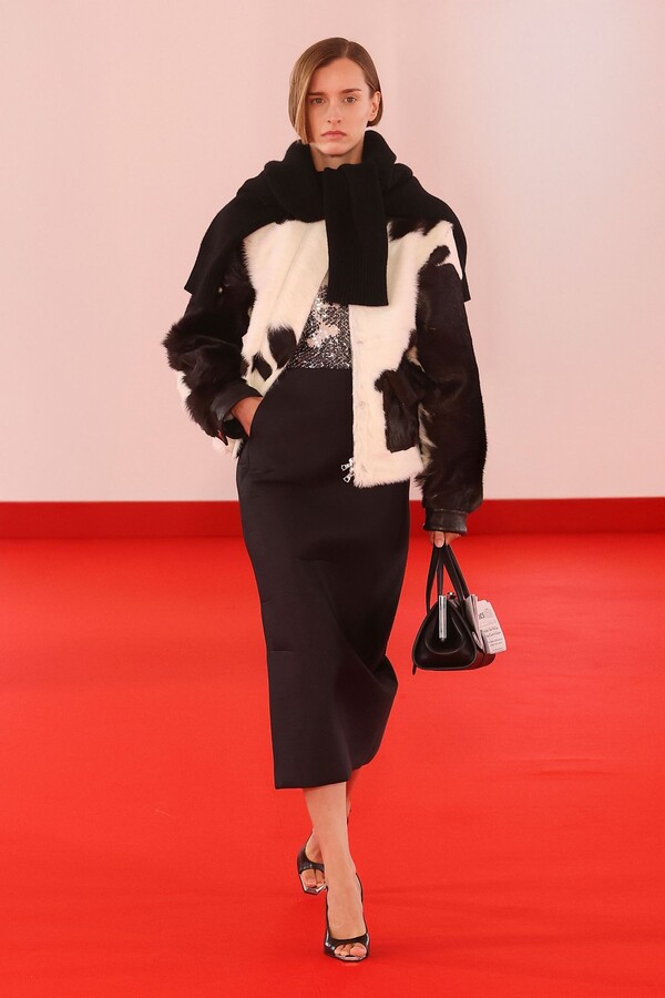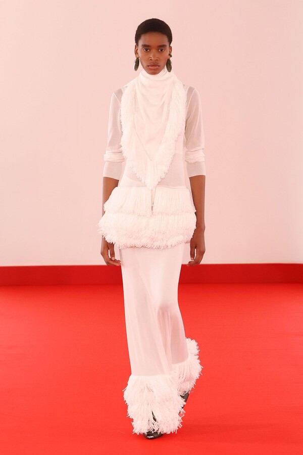Defile, neopren destekli ekose bir blazer ve iri tokalı dar bir bandeau ile açıldı. İlk andan itibaren “disiplinli terzilik” ile “gündelik rahatlık” arasındaki kontrast vurgulandı.