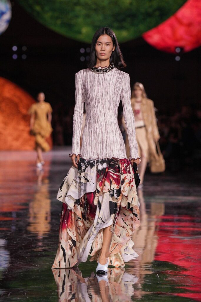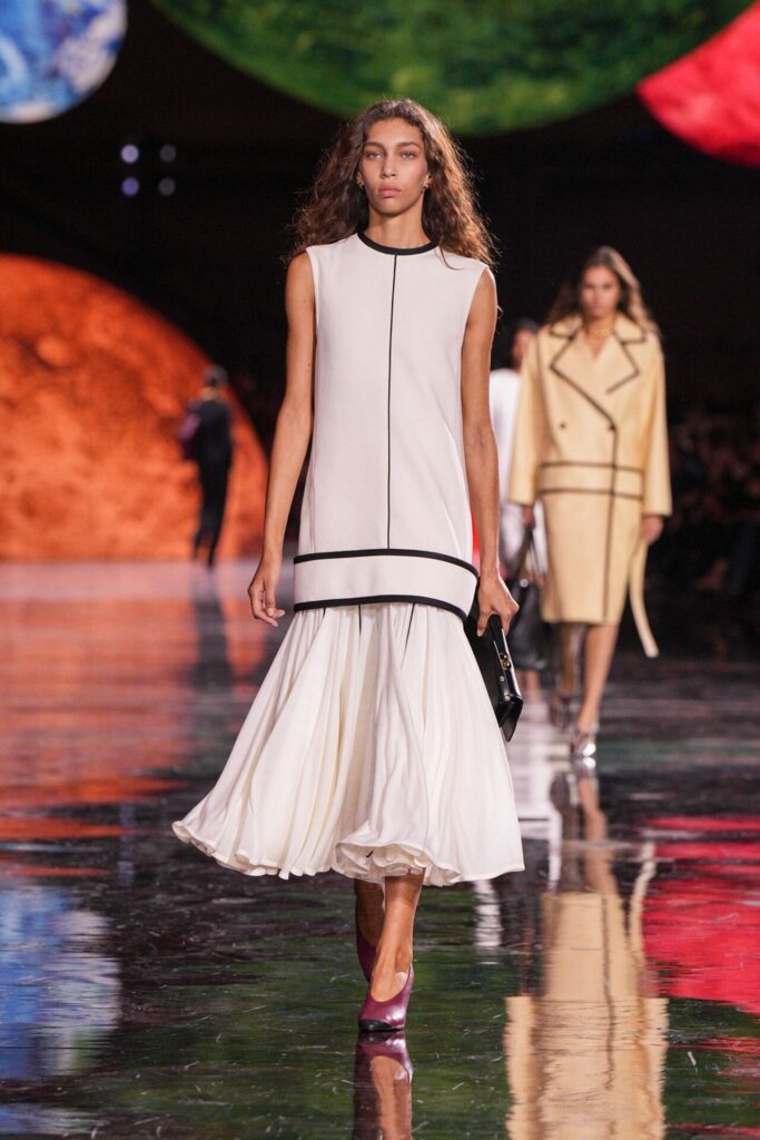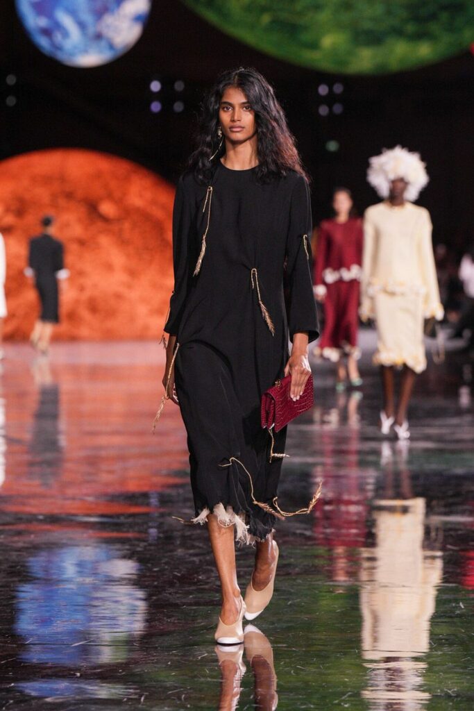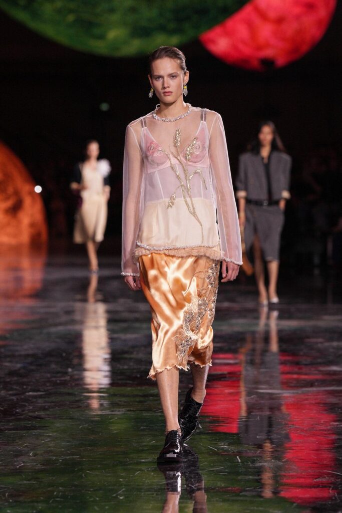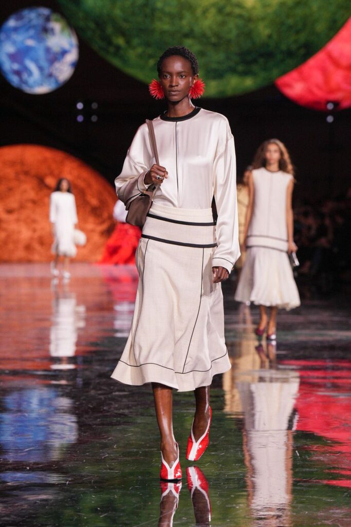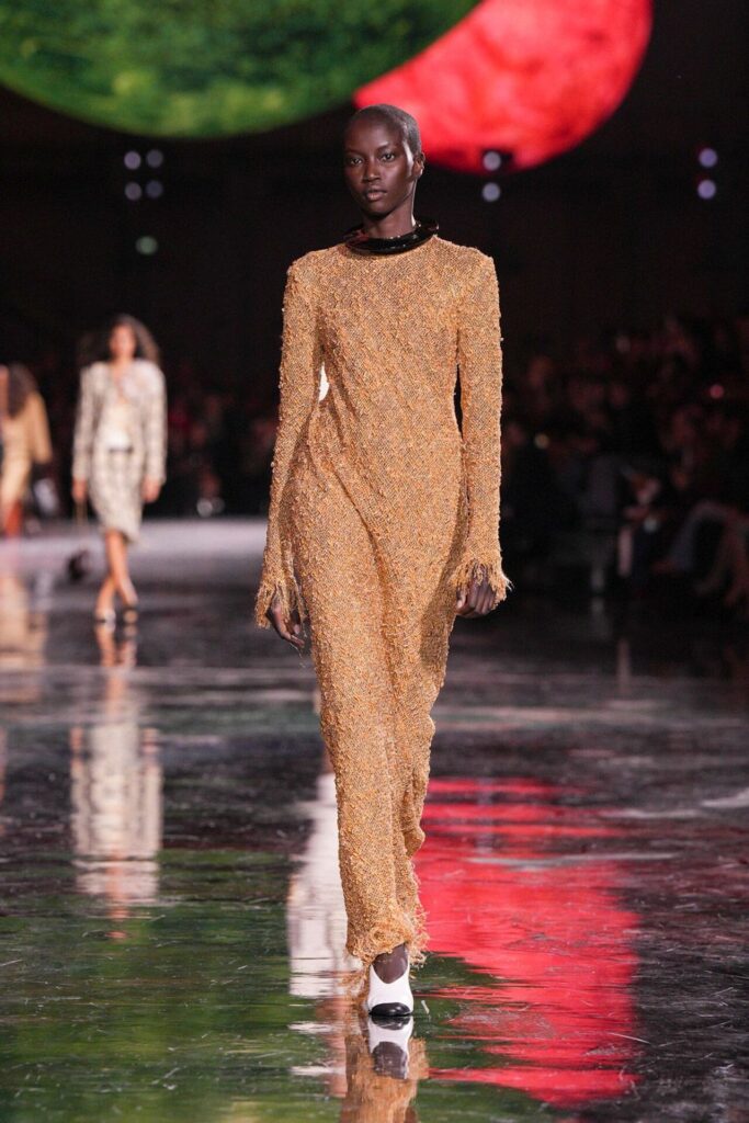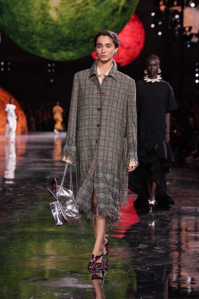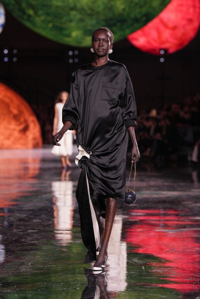 Paris Moda Haftası’nda Chanel, Matthieu Blazy’nin ilk koleksiyonuyla Grand Palais’i adeta galaktik bir sahneye dönüştürdü. Işık küreleri ve parlayan gezegenlerle aydınlanan atmosfer, markanın tarihindeki en önemli dönüşümlerden birine zemin hazırladı. Chanel’in 115 yıllık tarihinde direksiyona geçen dördüncü tasarımcı olan Blazy, mirasa hapsolmak yerine onu yeniden canlandırdı. Coco Chanel’in maskülen formlara olan sevgisini, jersey kumaşlarla özgürleşen siluetlerini ve hareket odaklı duruşunu modern bir bakışla yorumladı. Kısa pantolon takımlar, zincir ağırlıklı gömlekler ve akıcı formlar, markanın “konforla zarafet” dengesi üzerine kurulu yeni çağını başlattı.