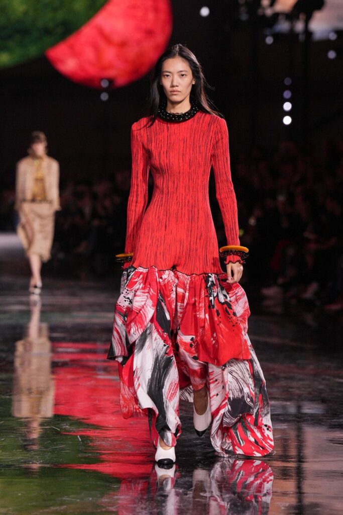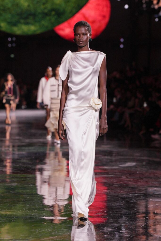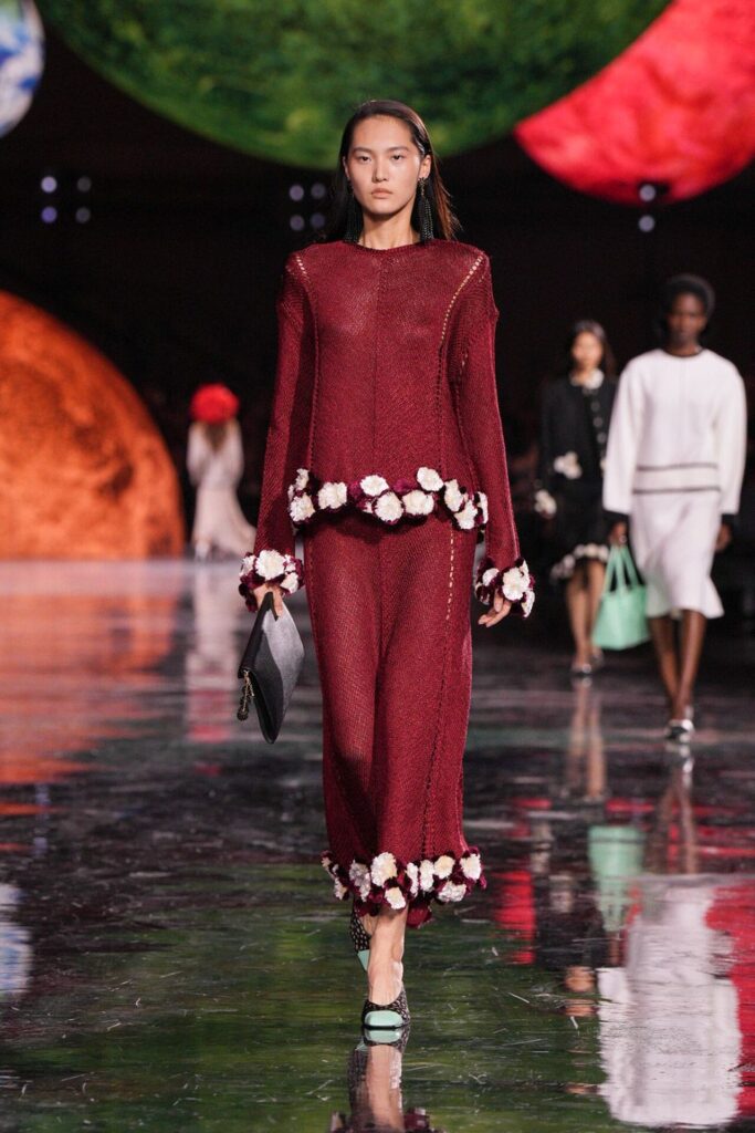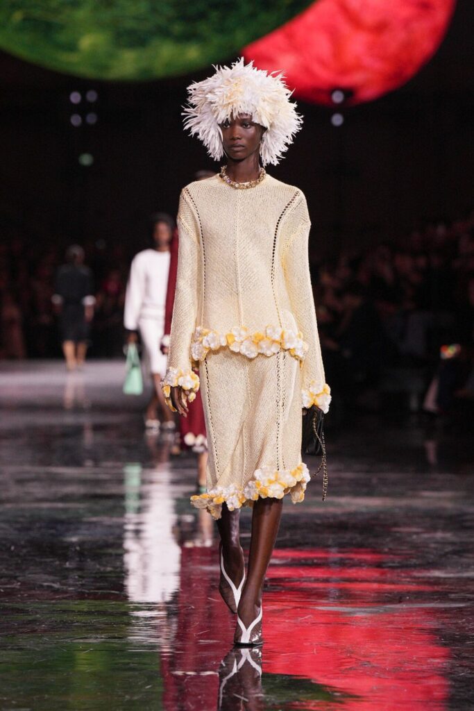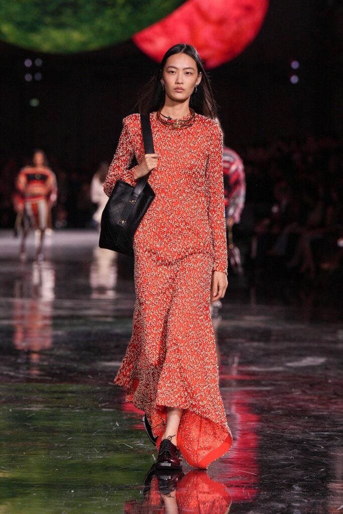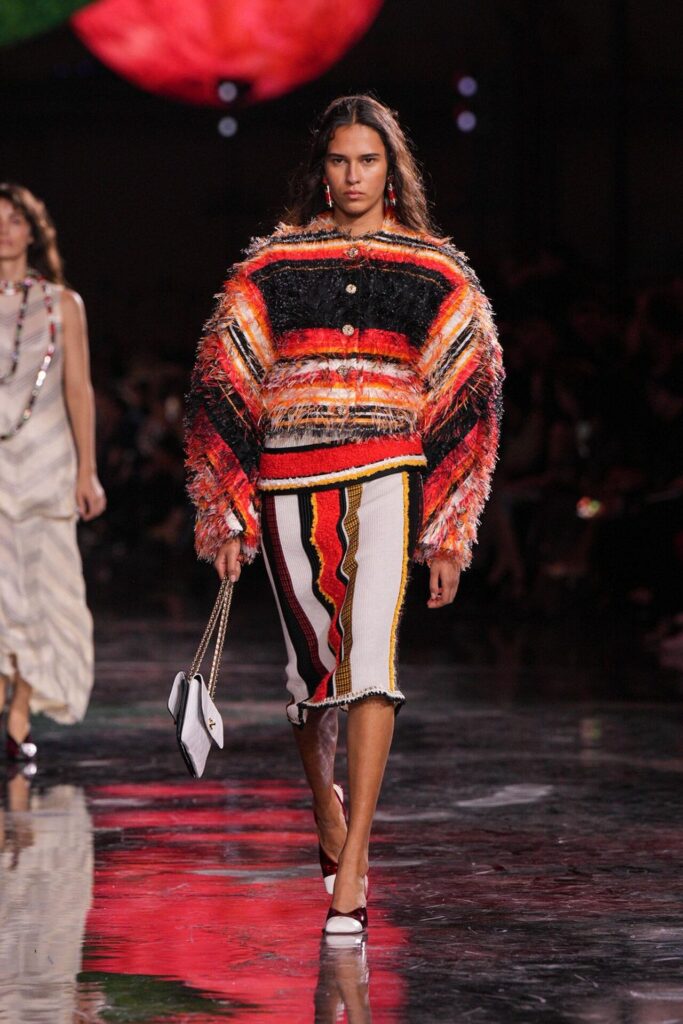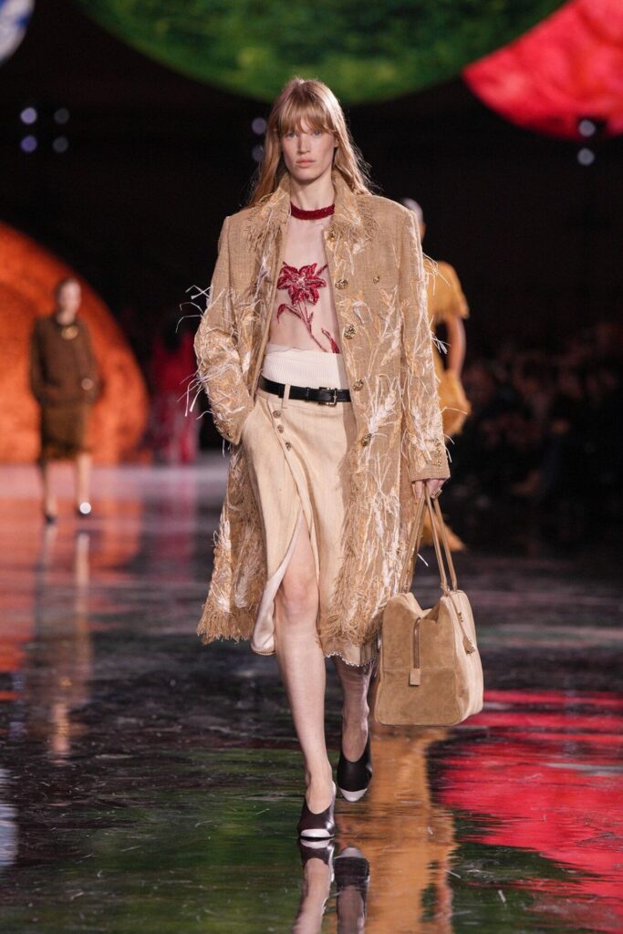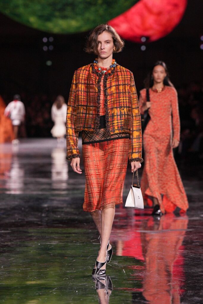Blazy’nin malzeme ustalığı, Bottega Veneta döneminden taşıdığı yenilikçi ruhla Chanel’de de hayat buldu. Geleneksel tweed kumaşlar viskon karışımlarla hafifletilerek canlı bir dinamizm kazandı; örgü V-yaka kazaklar, kamelya işlemeli saten eteklerle tamamlanarak günlük şıklığı yeniden tanımladı. Efsanevi 2.55 çanta, esneyebilen tel yapısıyla “zamansız ama yaşayan” bir hikâyeye dönüştü. Defilenin kapanışında saten tişörtlerle tüy etekler birleştiğinde, Chanel’in geçmişiyle bugünü arasındaki diyalog yeniden yazıldı. Spring Summer 2026, Chanel’in köklü zarafetini çağdaş bir özgürlükle buluşturarak modada yeni bir sayfa açtı.