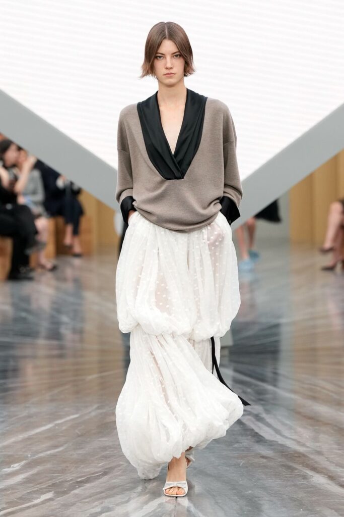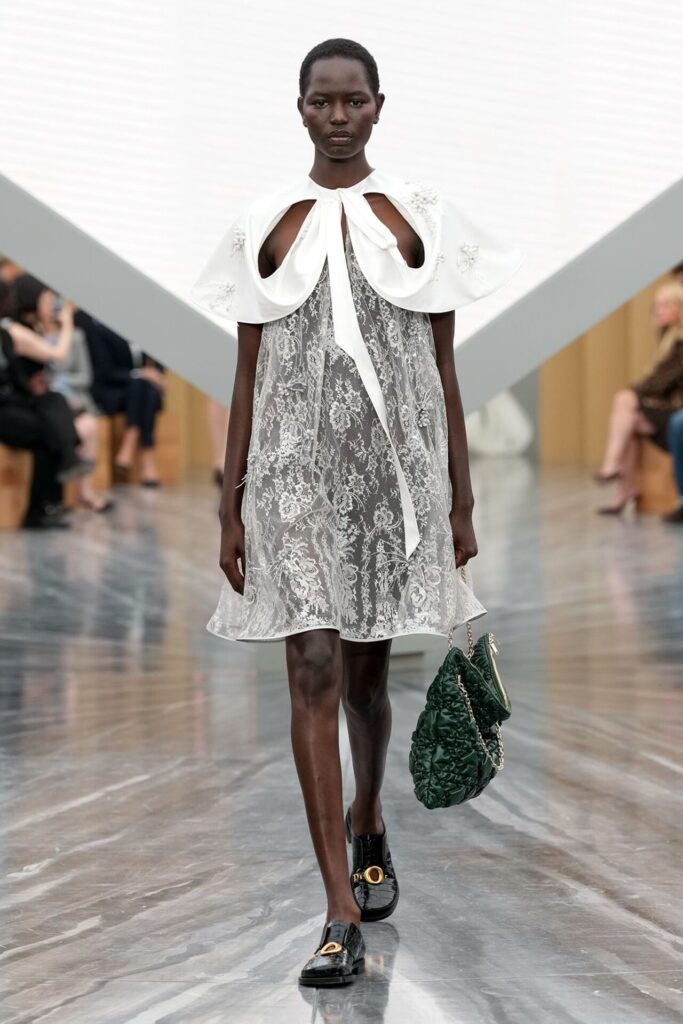 Koleksiyonda tüller, şifonlar ve dantel işlemelerle romantik bir masal havası yaratılırken, ani kontrastlarla daha karanlık ve teatral dokunuşlar öne çıktı. Lady Dior çantası süet bowling formuna bürünürken, tavşan kulaklı Louis topuklar Anderson’ın mizahi yanını ortaya koydu. Spring Summer 2026, Dior’un ihtişamını hem teatral hem de gündelik bir dille yeniden tanımlayarak markayı yeni bir çağa taşıdı. Anderson, ilk koleksiyonuyla Dior’u sadece korumakla kalmayıp, geleceğe cesur bir şekilde hazırlayan bir vizyon sundu.