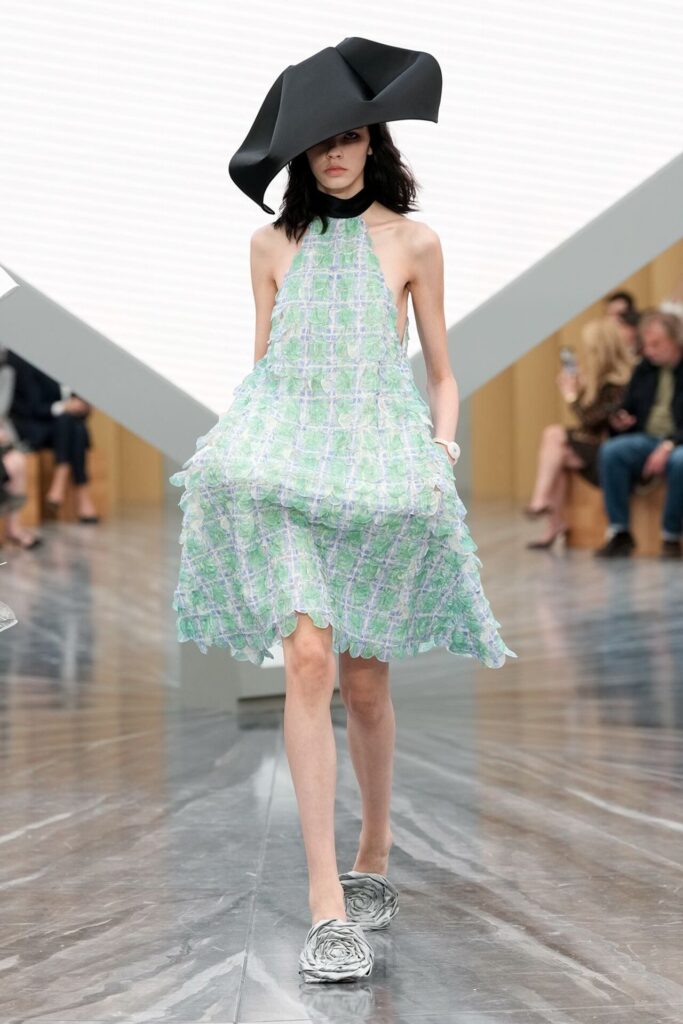 Paris Moda Haftası’nın en çok beklenen anı, Grand Palais Éphémère’de Jonathan Anderson’ın Dior için hazırladığı ilk kadın koleksiyonu oldu. Defile, Dior’un geçmişini ve bugünkü mirasını çarpıcı görsellerle sorgulayan sinematik bir açılışla başladı. Anderson, markanın ikonik kodlarını kendi özgür bakış açısıyla yeniden şekillendirdi: krini elbiseler jersey kumaşla modernleşti, Bar ceket asit yeşili tweed ile küçültülerek yeniden doğdu, smokinler denimle birleşti.