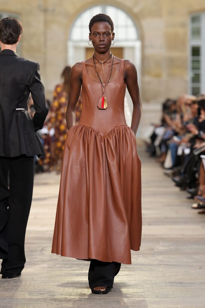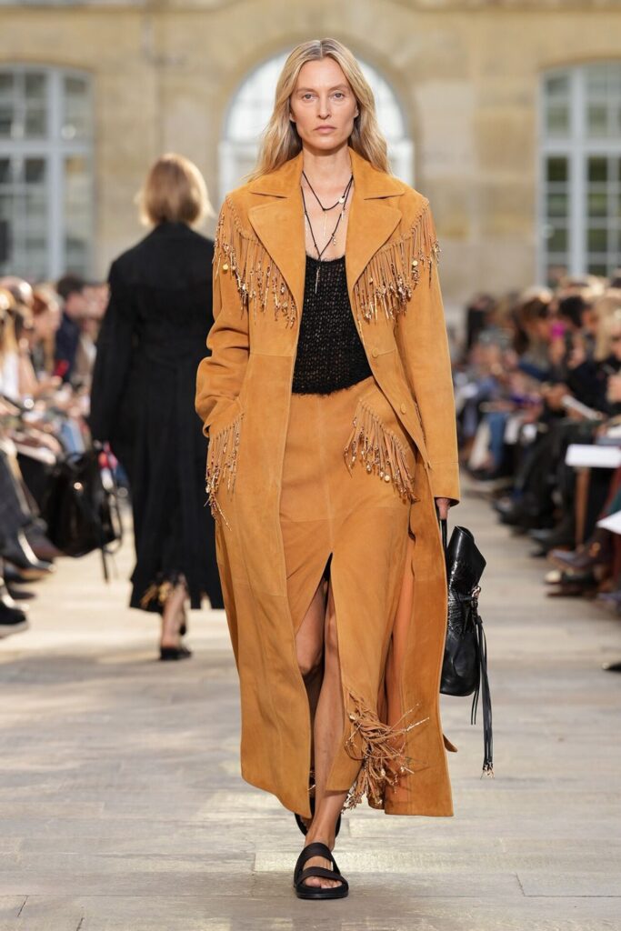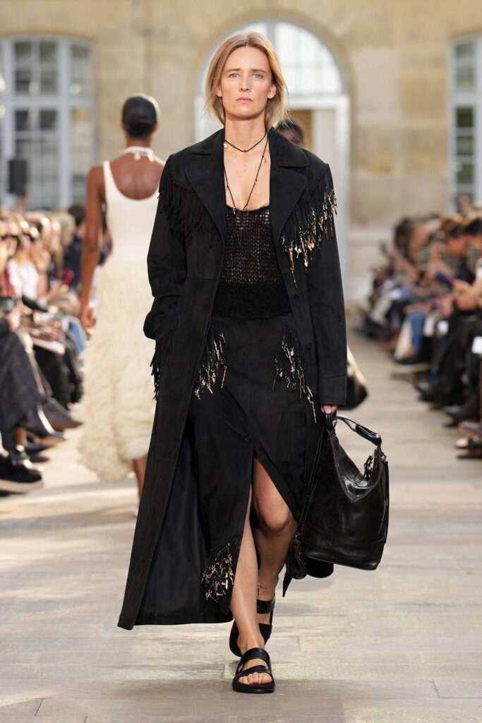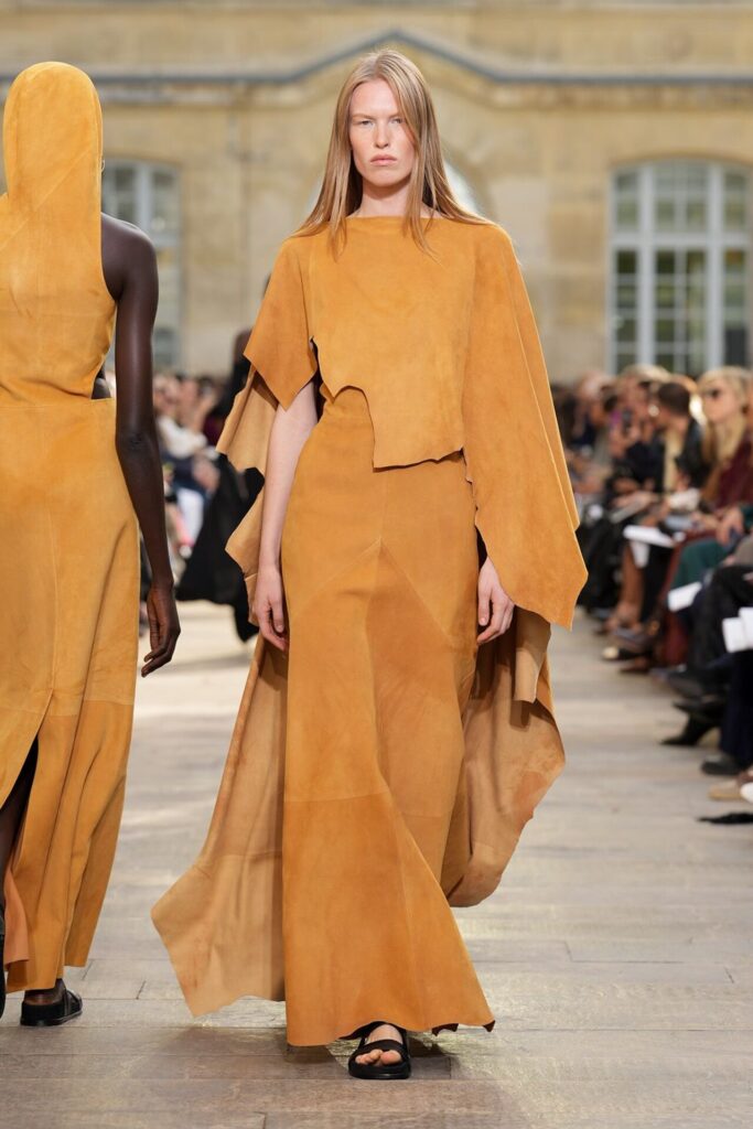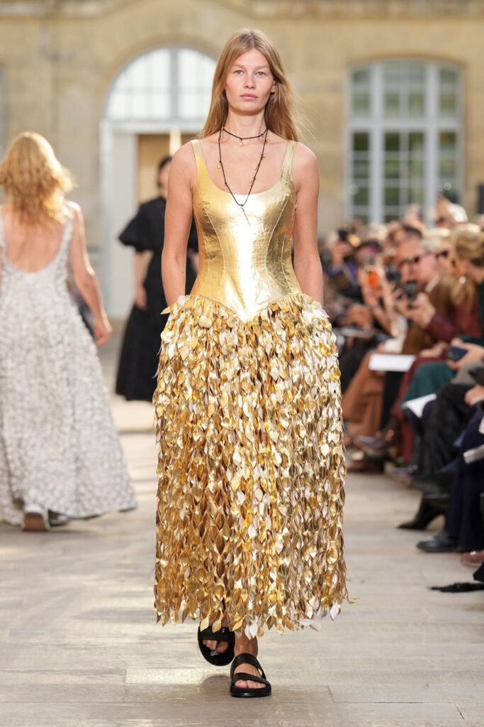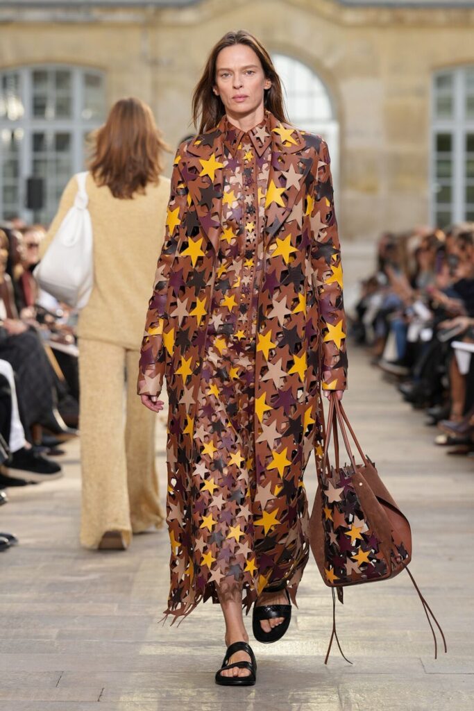 Paris Moda Haftası’nda Gabriela Hearst, Spring Summer 2026 koleksiyonunu tarot kartlarının dönüşüm ve yenilenme sembolleri üzerine kurdu. Her tasarım, Major Arcana kartlarından birine karşılık gelirken; defile, hayat yolculuğunun arketipsel anlarını moda diliyle anlattı. Binlerce deri çiçekten oluşan açılış elbisesi bolluk ve bereketi simgelerken, finaldeki örgü ve süet karışımı tasarım teslimiyetin ve yeniden doğuşun metaforu oldu. Hearst, bu güçlü sembolizmi kendi deadstock kumaşlarıyla işleyerek sürdürülebilirliği de koleksiyonun merkezine yerleştirdi.