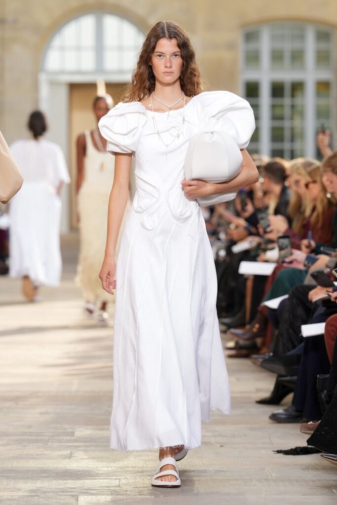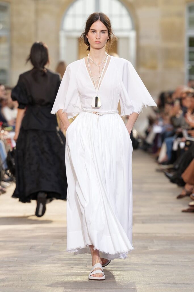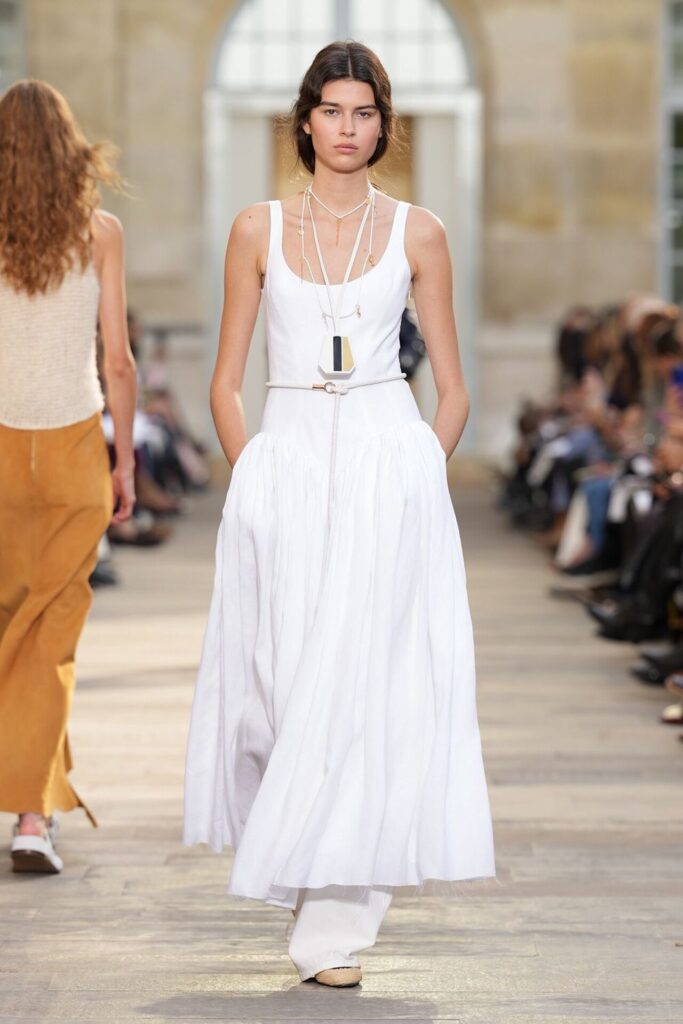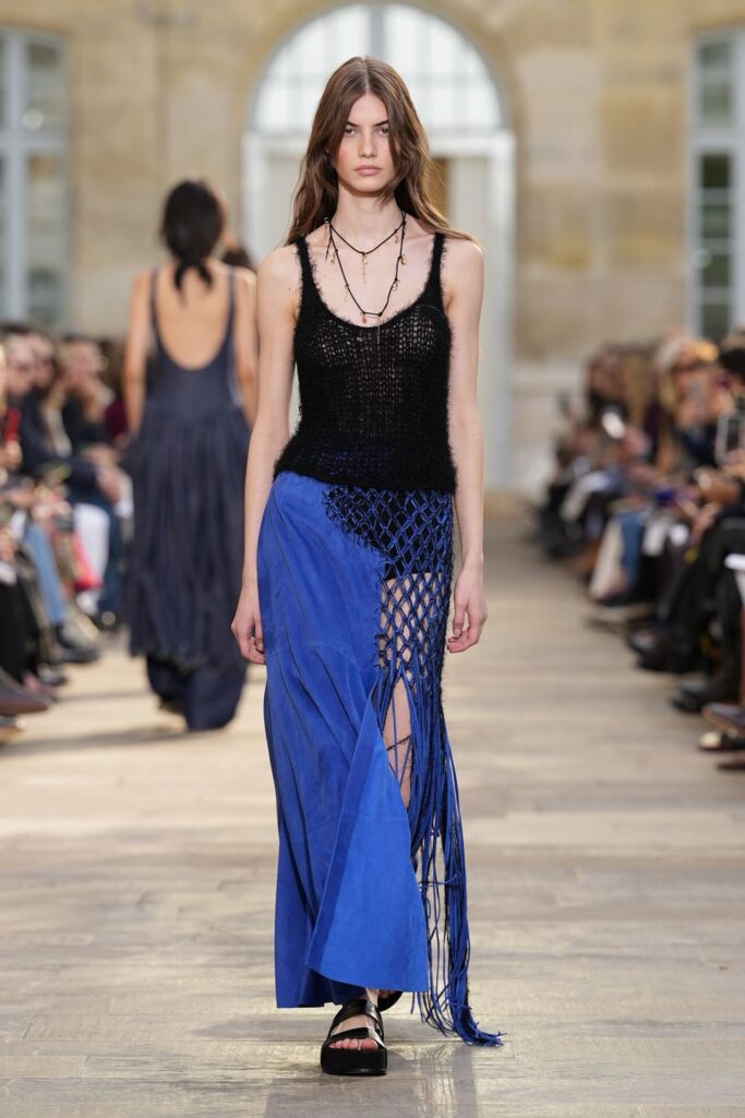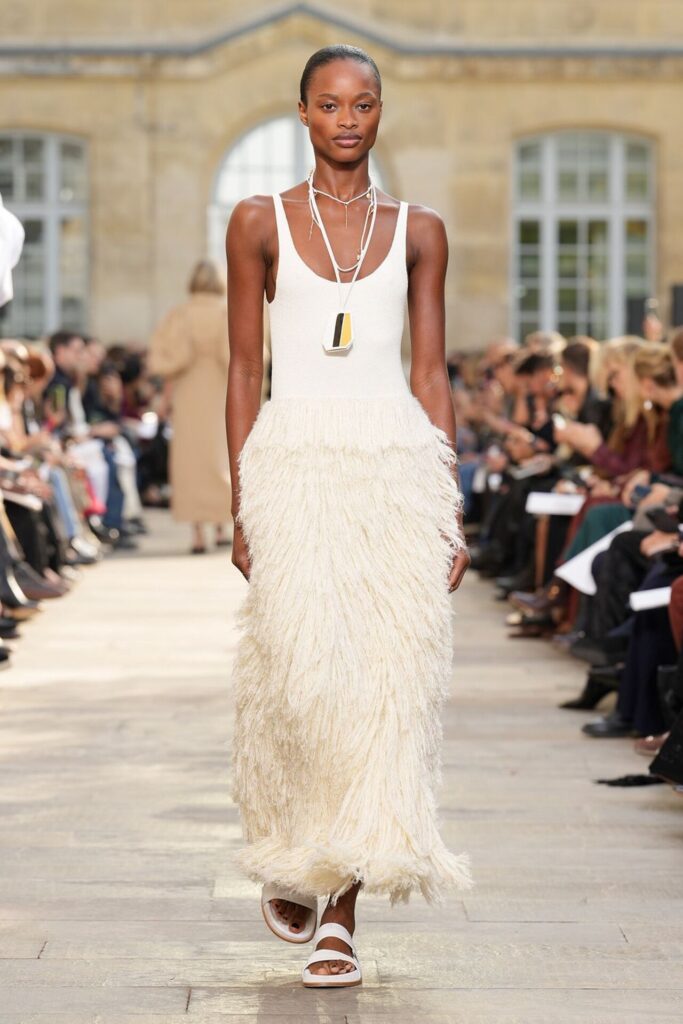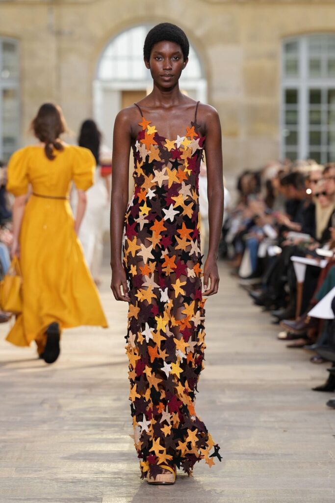 Paris Moda Haftası’nda Gabriela Hearst, Spring Summer 2026 koleksiyonunu tarot kartlarının dönüşüm ve yenilenme sembolleri üzerine kurdu. Her tasarım, Major Arcana kartlarından birine karşılık gelirken; defile, hayat yolculuğunun arketipsel anlarını moda diliyle anlattı. Binlerce deri çiçekten oluşan açılış elbisesi bolluk ve bereketi simgelerken, finaldeki örgü ve süet karışımı tasarım teslimiyetin ve yeniden doğuşun metaforu oldu. Hearst, bu güçlü sembolizmi kendi deadstock kumaşlarıyla işleyerek sürdürülebilirliği de koleksiyonun merkezine yerleştirdi.