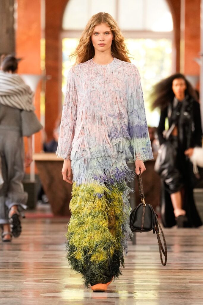 Louis Vuitton’un 2026 İlkbahar-Yaz defilesi tasarımları yumuşak dokular, akışkan siluetler ve cesur renk geçişleriyle ön plana çıkıyor. Katmanlarla oynanan kesimler, asimetrik detaylar ve hafif transparan dokular gibi unsurlar, markanın klasik çizgisine modern bir soluk katıyor.