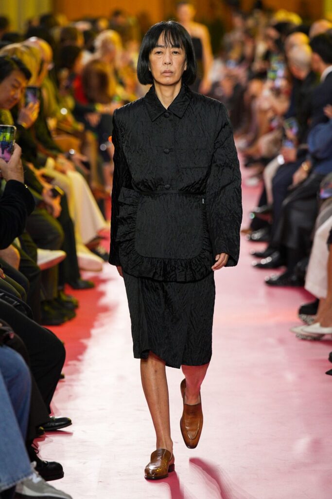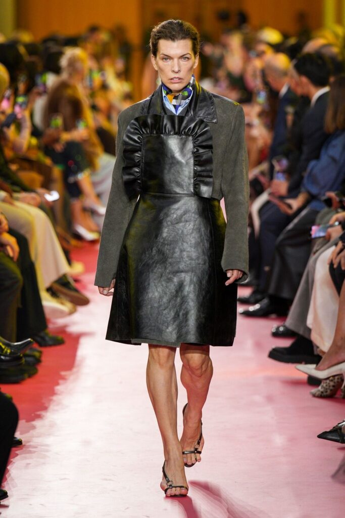 Miuccia Prada, bu sezon Miu Miu Spring Summer 2026 koleksiyonuyla şaşırtıcı bir yöne saptı: Podyum, adeta modern bir iş kıyafeti geçidine dönüştü. Formika masaların ve PVC perdelerin süslediği endüstriyel atmosferde, modeller garson önlükleri, kaynakçı tulumları ve hizmetçi görünümleriyle yürüdü. Prada, kadın emeğini ve iş hayatındaki görünmeyen gücü modanın diliyle yorumlarken, aynı anda bu emeğin nasıl ticarileştirilebildiğini de ironik biçimde sorguladı. Koleksiyon, iş kıyafetlerini modanın vitriniyle buluşturan keskin bir sosyal deney gibiydi.